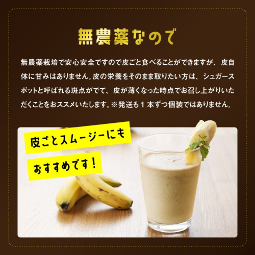 希少価値の高い国産・無農薬バナナ!糖度が高くねっとりとした食感が特徴の国産バナナは、職人が一日も休まず毎日手作業で丹念に仕上げ、たっぷりの愛情が詰まっています。皮ごとスムージーにもオススメです。