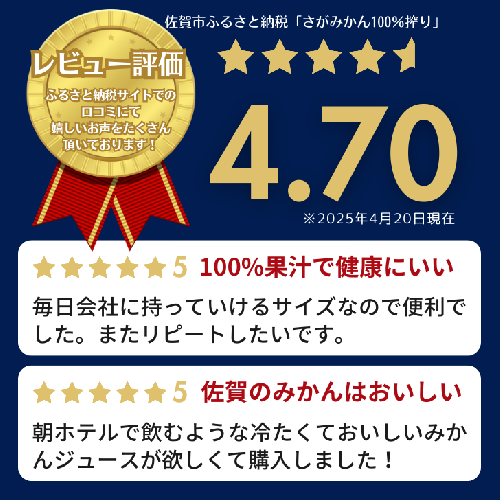 佐賀県産高品質温州みかん果汁のみを使用し、濃縮還元等を行っていないストレートジュースです。