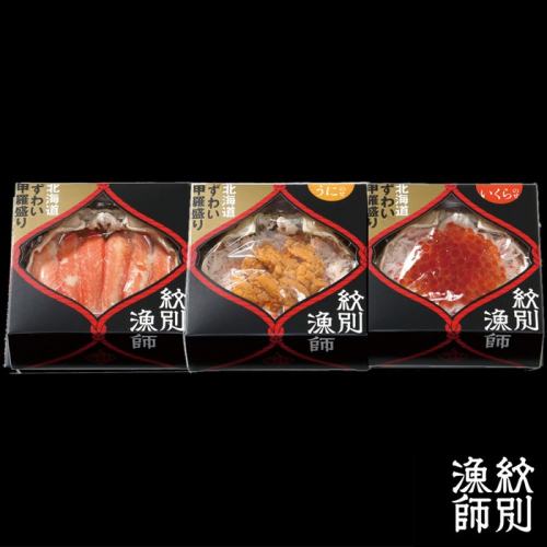 【原産地】ずわいがに、うに、いくら醤油漬(鮭卵):北海道沖産