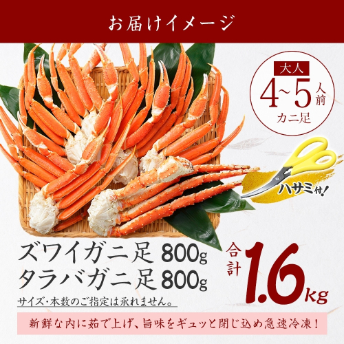- 【年末配送可能】3333. 二大蟹食べ比べ 1.6kg セット(タラバ足 800g ズワイ足 800g) かに カニ 蟹 たらば ずわい タラバ タラバガニ ズワイ ズワイガニ 送料無料 北海道 弟子屈町