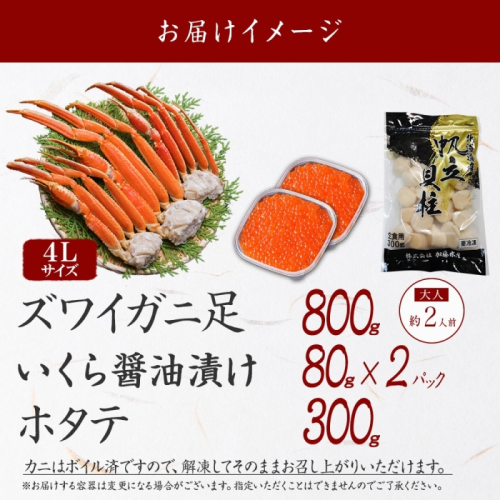 - 3417. ズワイガニ足 800g いくら 80g×2個 ホタテ 300g ズワイガニ ずわいがに 蟹 海鮮 専用ハサミ付 カニ かに イクラ 帆立 ほたて 送料無料 北海道 弟子屈町