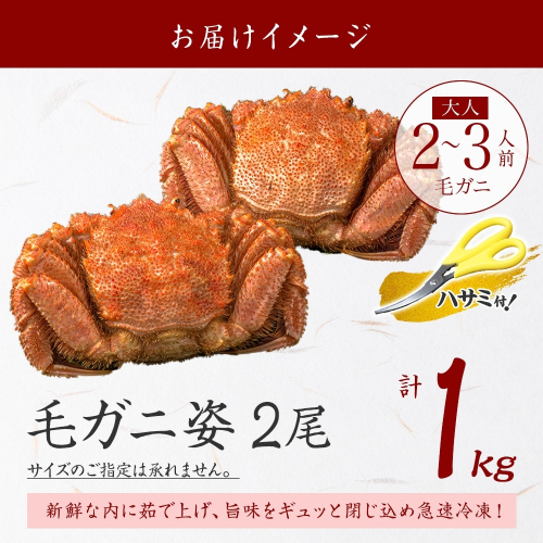 3319. 毛蟹 2尾 計1kg前後 食べ方ガイド・専用ハサミ付 カニ かに 蟹 海鮮 ボイル 送料無料 北海道 弟子屈町