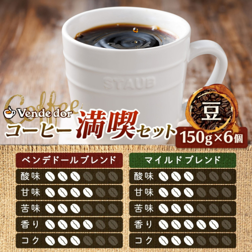 • ブレンド コーヒー 豆 150g×6個セット | 満喫セット コーヒー豆 人気 コーヒー 珈琲豆 ベンデドール 珈琲 自家焙煎 北海道 釧路町 釧路超 特産品