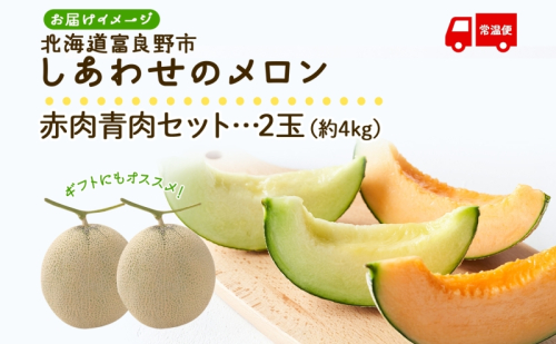 - <2026年発送 先行受付>ふらの産 しあわせのメロン 赤肉 青肉 メロン 2玉 セット 計4kg 富良野メロン 果物 フルーツ 甘い ギフト 贈答 産地直送 お取り寄せ 送料無料 ウエノ農園 北海道 富良野市