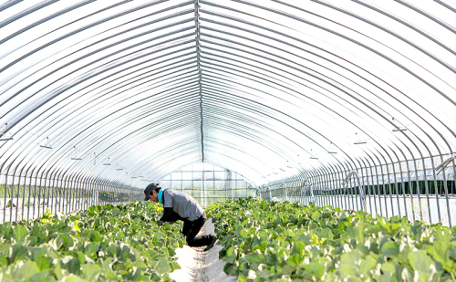一年の仕事の始まりは厳寒の2月、ハウス周りの雪を除け、ハウスにビニールを掛けるところから始まります。4月にもなるとハウスの周りの雪は消え、アスパラの収穫で大忙しに。春が勢いよく訪れます。
