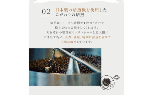 ふんだんに使用した最高級コロンビア豆から醸し出すリッチなコクと甘みをベースに、ブラジルのナッツ感や上品なほろ苦味、インドネシアからは大地や森を連想させるアーシー感をブレンドし、力強さを感じさせながらも後味は上品に甘みを伴いながらフィニッシュさせてくれる自慢のブレンドです。