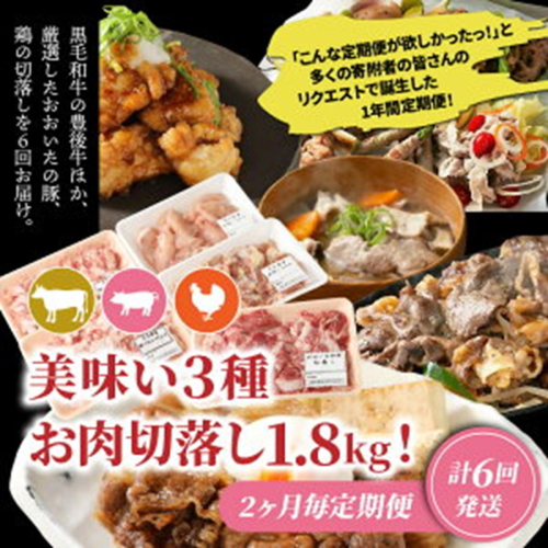 2ヶ月毎お届け!美味い3種のお肉切落し1.8kg定期便/計6回発送_2165R-K 837873 - 大分県国東市