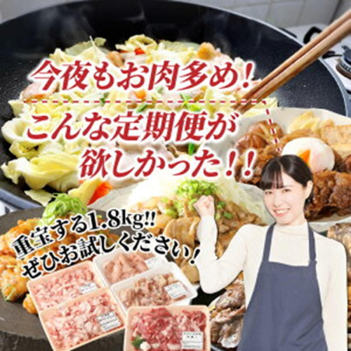 美味い3種のお肉切落し1.8kg!定期便/計6回発送