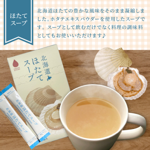 北海道ほたてから作られたホタテエキスパウダーを使用したほたて風味香るスープです。
