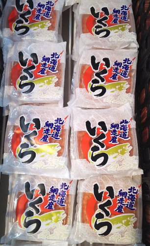 原材料:鮭卵(いくら)、しょうゆ(小麦・大豆を含む)、米発酵調味料、麦芽糖、酵母エキス、昆布だし