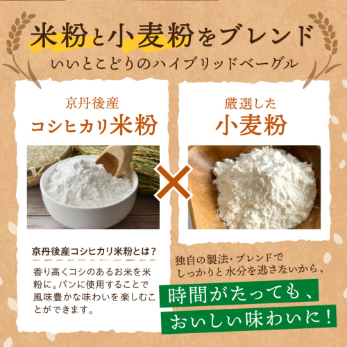 京丹後産コシヒカリ米粉と小麦粉を併用して作られたベーグルは、米粉パンと小麦粉パンの両方の特徴を持つハイブリッドなベーグルです。