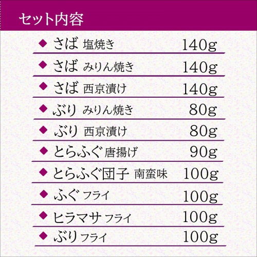 - 漁協直送!レンジで本格焼き魚と揚げ物10種セット ( 焼き魚 揚げ物 レンジで簡単 サバ さば ぶり ブリ ふぐ フグ ヒラマサ フライ 唐揚げ みりん焼き )【C3-029】