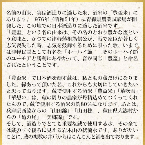 青森県弘前市・三浦酒造さんの「豊盃」が登場。県外出荷がほとんどされていない大人気シリーズ。