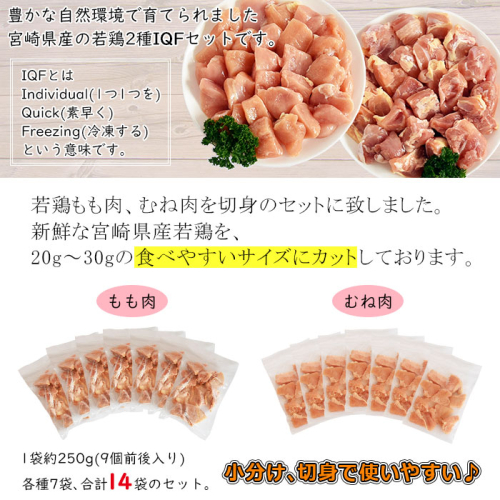 <宮崎県産若鶏もも切身・むね切身セット IQF250g×14袋 合計3.5kg>
