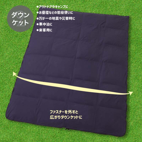 - 3WAYスリーウェイ寝袋 専用ケース付き | 環境に優しい再生羽毛使用 | ネイビー無地 | 日本製 キャンプ アウトドア 羽毛 寝袋 ダウンケット お昼寝 3WAY 車中泊