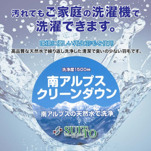 高品質な天然水で繰り返し洗浄した清潔で臭いの少ない再生羽毛を使用