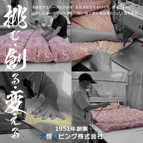 都留市の自社工場にて熟練職人が一枚一枚仕上げるこだわりの品 | 大恒リビング | 3WAYスリーウェイ寝袋