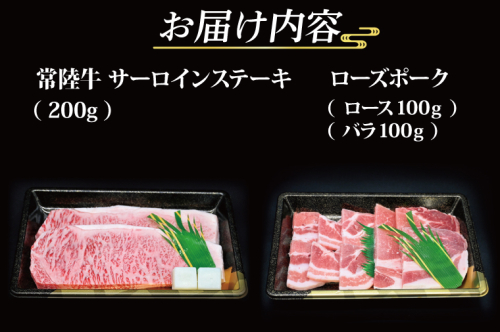- 【常陸牛・ローズポークステーキ焼肉セット(3人前)】 常陸牛 サーロインステーキ 約200g ローズポーク焼肉用 約200g (ロース100g ばら100g) ( 茨城県共通返礼品・茨城県産 ) ブランド牛 茨城 国産 黒毛和牛 霜降り 厚切り 牛肉 ブランド豚 豚肉 冷凍 ステーキ 焼肉