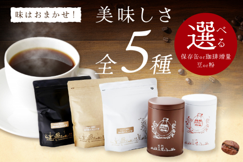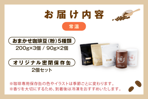 - おまかせ珈琲豆(粉)5種類(200g×3個、90g×2個)