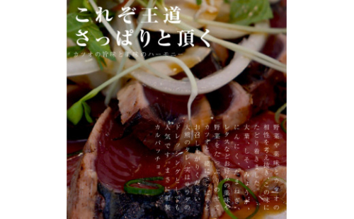 漁獲後すぐに船上凍結した、 鮮度のよい鰹をタタキに仕上げました。