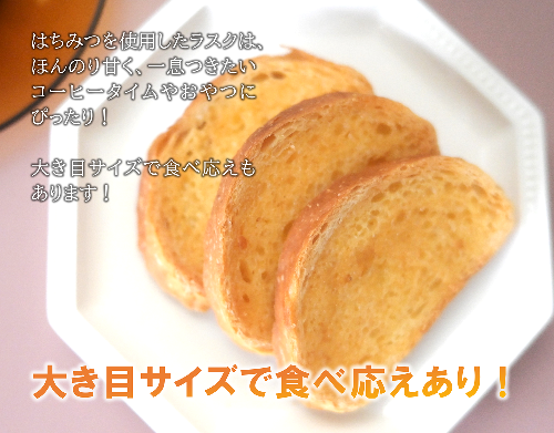 自然の恵みであるはちみつを使用したラスク(米粉入り)はほんのりとした甘さです。