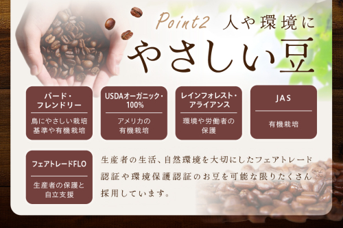 生産者や自然環境、製品の安全性を大切にする浜田市の自家焙煎珈琲ショップ「ナマケモノ珈琲」の珈琲豆。
