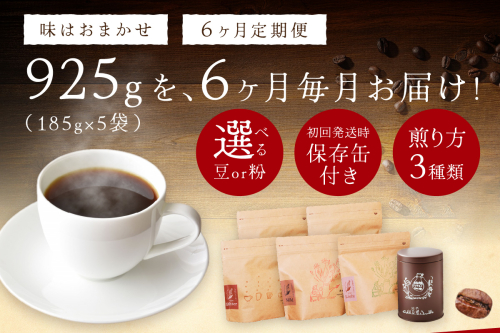 スローな浜田で焙煎をした珈琲(925g×6回の定期便) 定期便 6回 コーヒー 飲料 ドリンク 焙煎 おまかせ 直火 【023_1913】