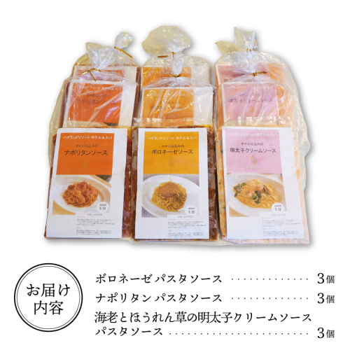- 【ハイランドリゾート】ホテル仕込みのパスタソース3種セット×3個