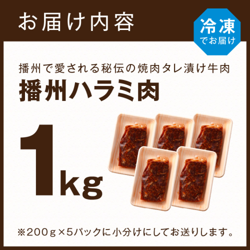 播州で愛される秘伝の焼肉タレ漬け牛肉 播州ハラミ肉 1kg《 肉 食品 焼肉 送料無料 やわらか ハラミ 焼肉セット バーベキュー 肉 バーベキューセット BBQセット 》【2401A00412】