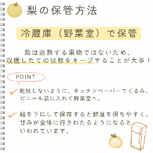 梨が傷むため、到着後すぐ箱から出して保管してください。