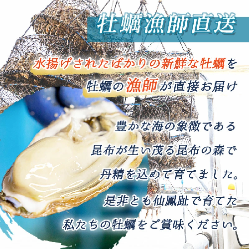 牡蠣は天候や海の状況により収穫が大きく左右されるため、誠に申し訳ございませんが、お届け日のご指定は承ることができません。 収穫でき次第、順次発送となりますので、何卒ご了承ください。
